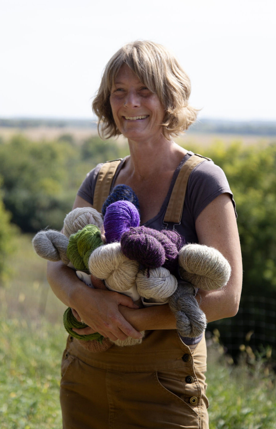 As the baroness of Get Bentz Farm, Theresa uses both wool from her flock and fleece purchased from shepherds throughout the region to create her signature products. “I love that I’ve become a producer of yarn in our industry,” smiles Theresa. “I enjoy having control over the end product. I get to collaborate with others to create something that people use.”