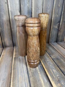 Browse Reclaimed North’s full selection of beautifully detailed pens, bottle stoppers, seam rippers, bowls, pepper mills, salt and pepper shakers and other turned goodies on her Etsy shop. With the addition of a laser engraver to her woodworking equipment, Reclaimed North now offers customization in the form of names or short messages on their pens.
